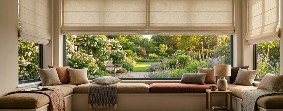 Moisture-resistant materials are available for kitchens and bathrooms, blackout and dimout fabrics for bedrooms and nurseries, and specialist conservatory blinds to manage the light and temperature in your living space year-round.