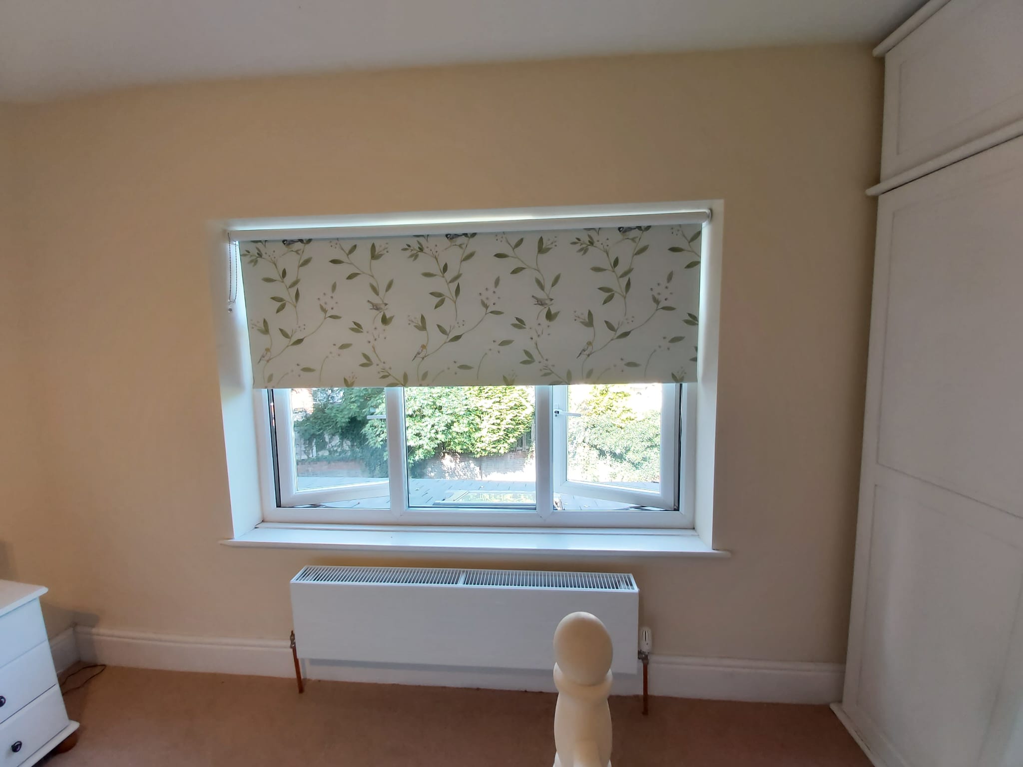 Roller blinds offer a sleek, uncluttered look that works beautifully in both modern and traditional homes. They roll up neatly to the top of the window when open, maximising natural light and views, and roll down smoothly to provide privacy and light control when needed. The simple mechanism means they’re easy to operate and virtually maintenance-free.